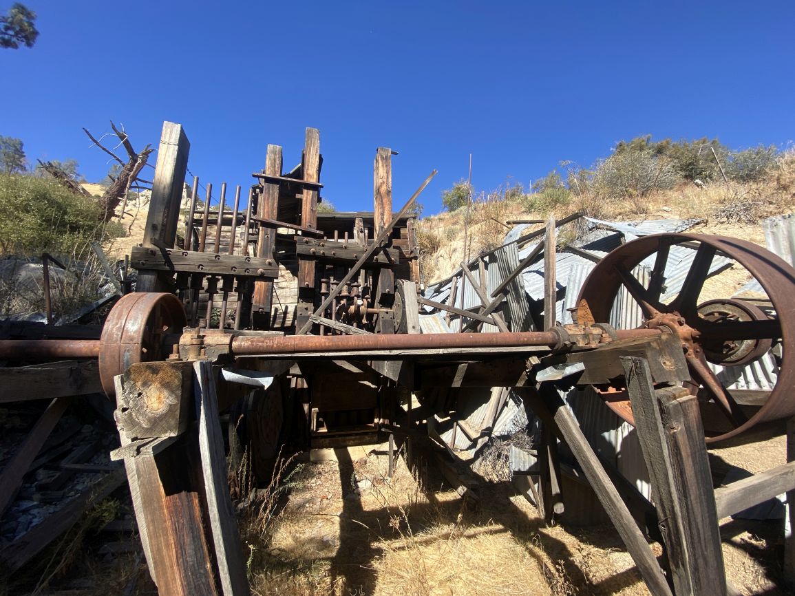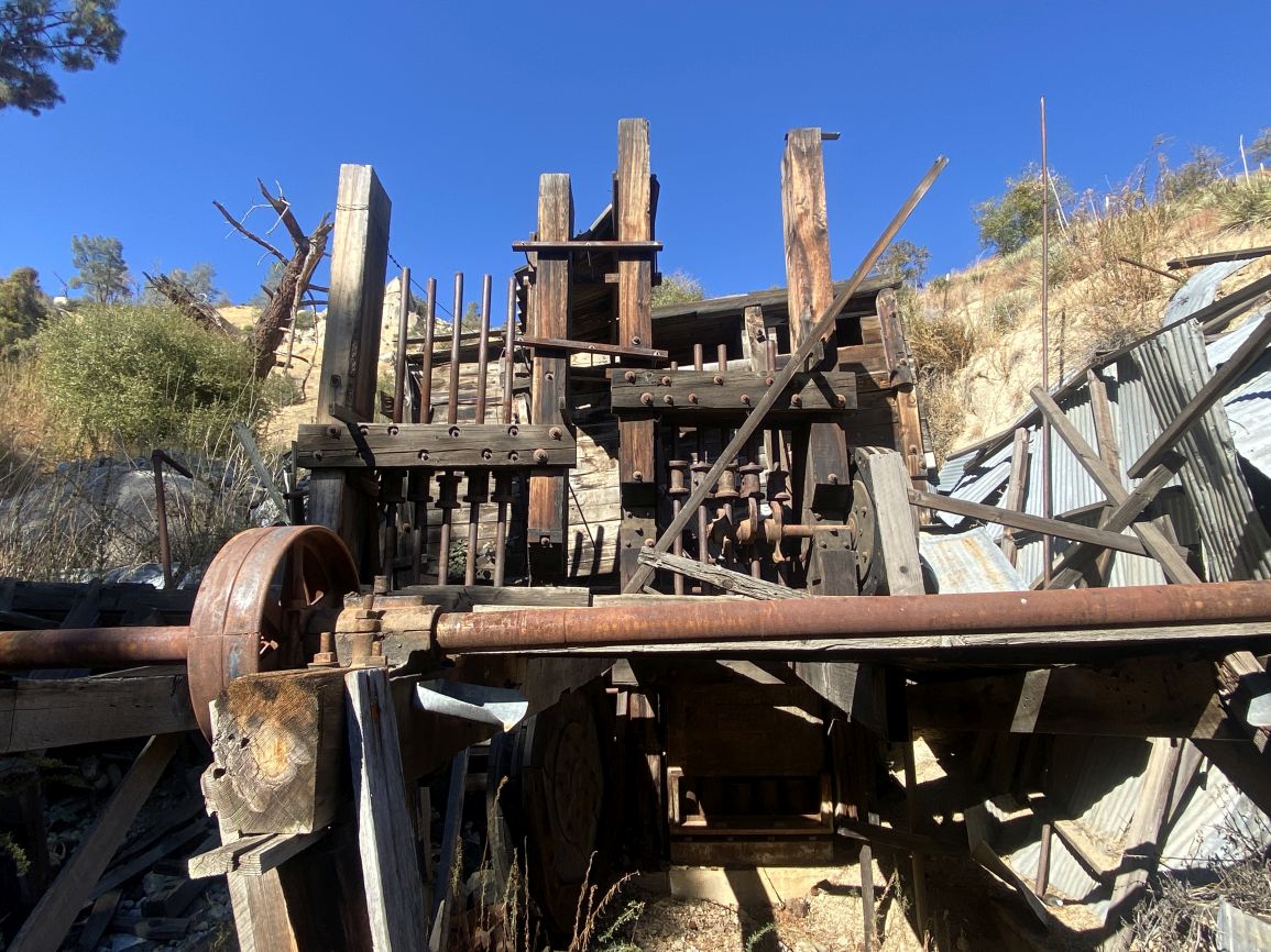 This 10-stamp gold Stamping Mill is located at the Keyesville mine, just above the Keyesville townsite. This is where the gold bearing ore was crushed and sifted to bring out the pure gold hidden inside... just a short walk from the Keyesville townsite